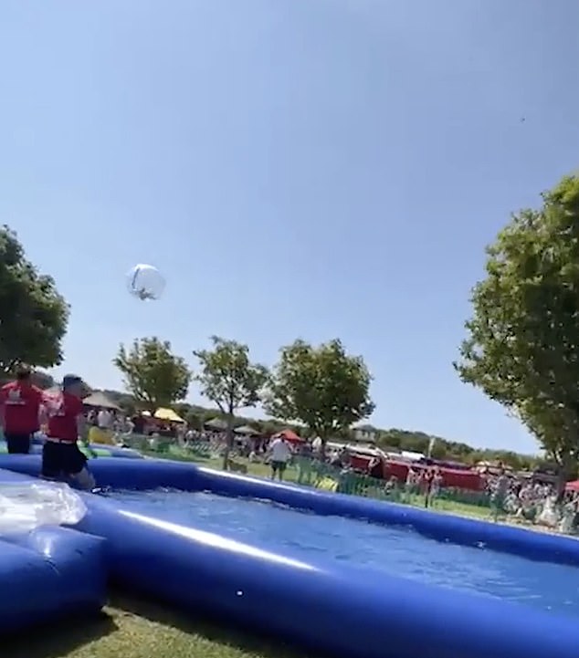 The haunting footage shows the exact moment that the little child is swept away into the air in an inflatable zorb that was created by a freak gust of wind.