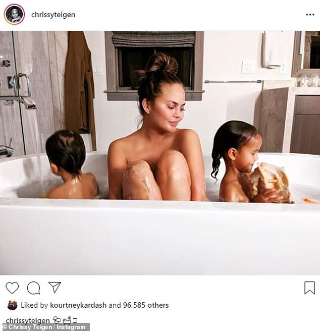 A recent image put up by the controversial celeb went viral on social media which features Chrissy taking a bath with her 5-year-old daughter Luna and 3-year-old son Miles.
