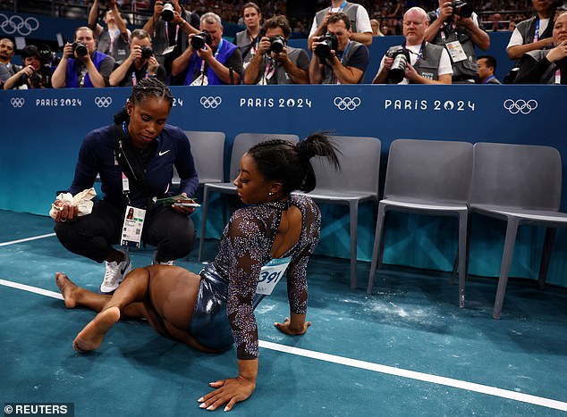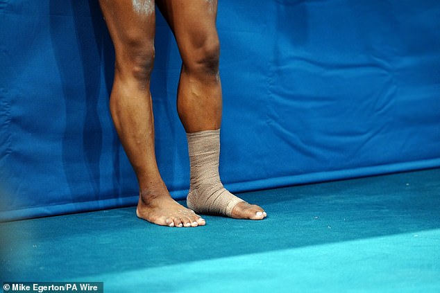 Experts revealed how the star ended up stretching her calf muscle by jogging up and down but then stepped out of the routine briefly so she could carry on with her floor exercise.