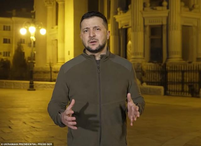 The Ukrainian President could be seen addressing his neighbor via a video link address, right outside his Presidential office on Friday.