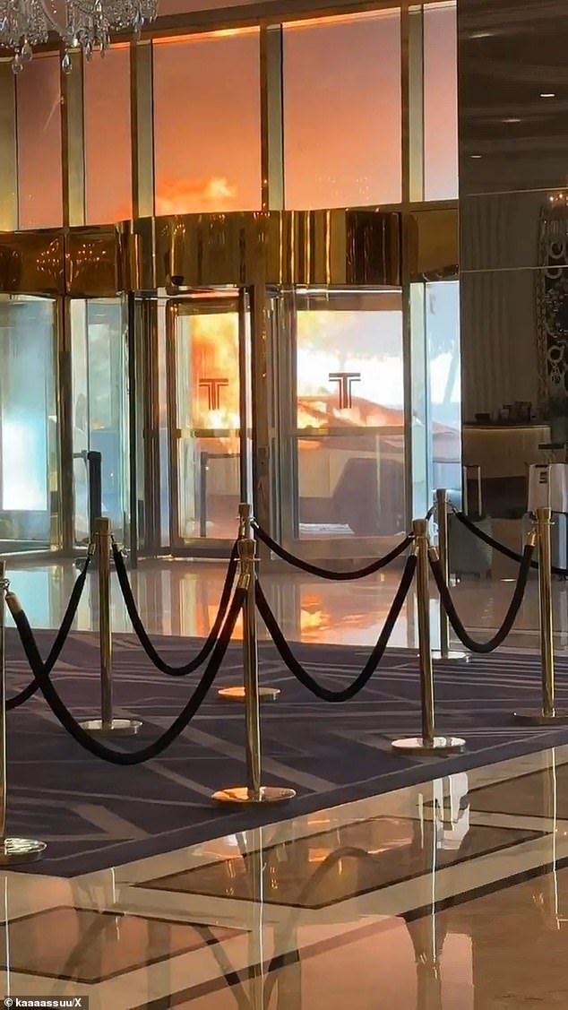 Shocking images of the fiery blaze located outside the front revolving doors of the hotel were shared. The incident arose at about 9 am in the morning as per the Las Vegas police.