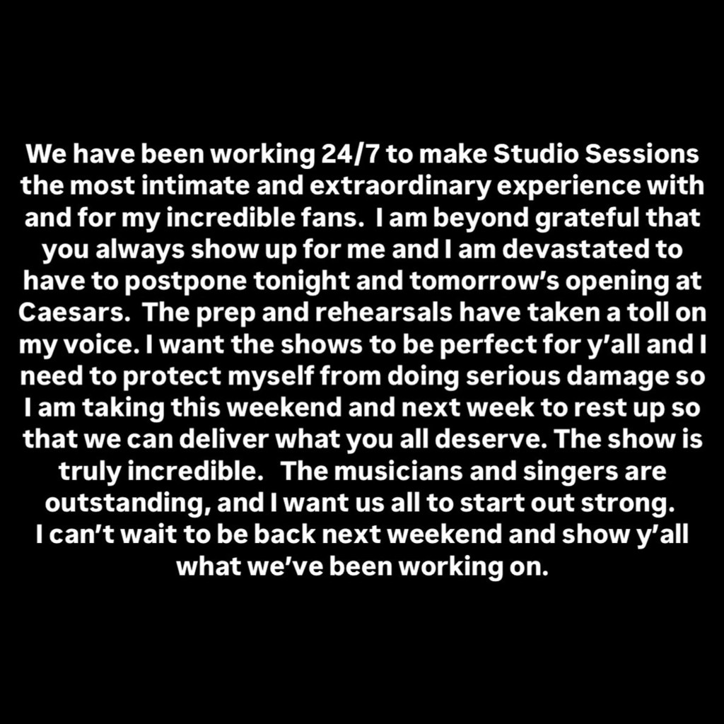 The singer and famed television host was seen axing the opening night of her much-anticipated Studio Sessions residency at the Colosseum at Caesars Palace just 90 minutes before showtime last week.