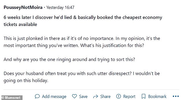 But leaving her alone in Economy Class and opting for First Class for your own good and luxury was deemed to be selfish and self-obsessed.