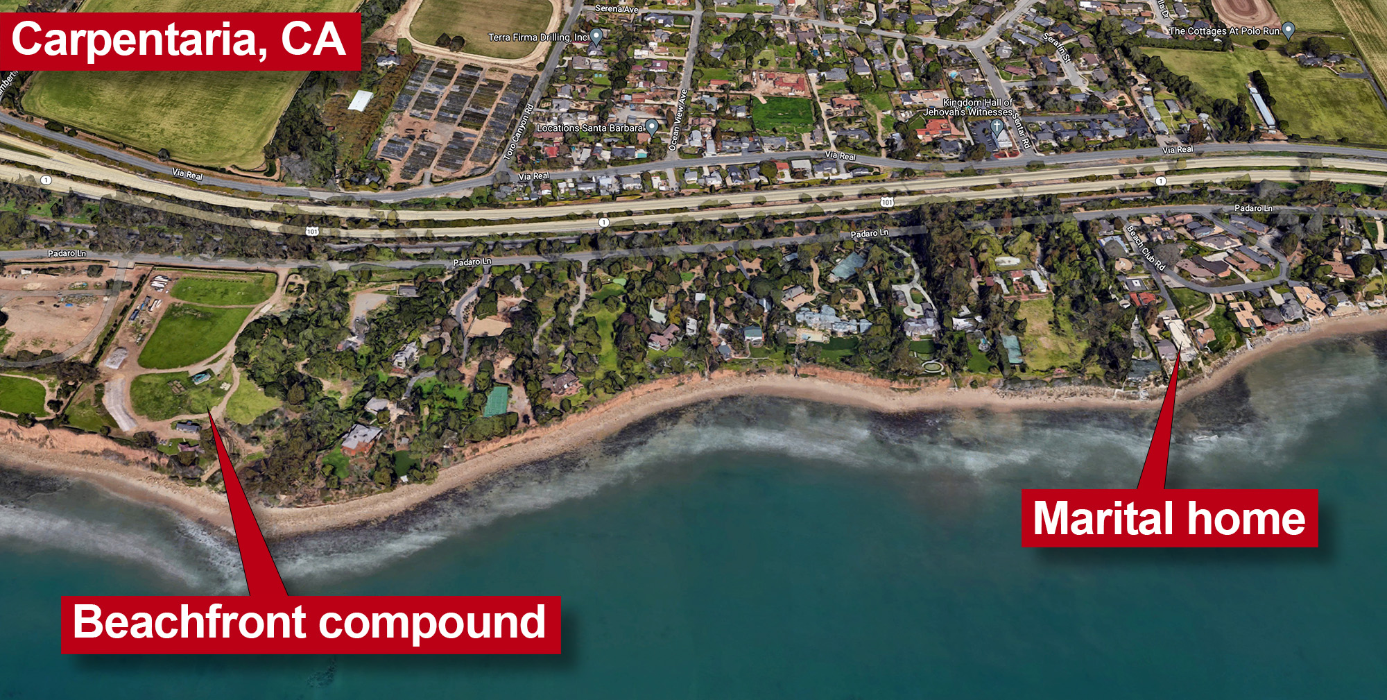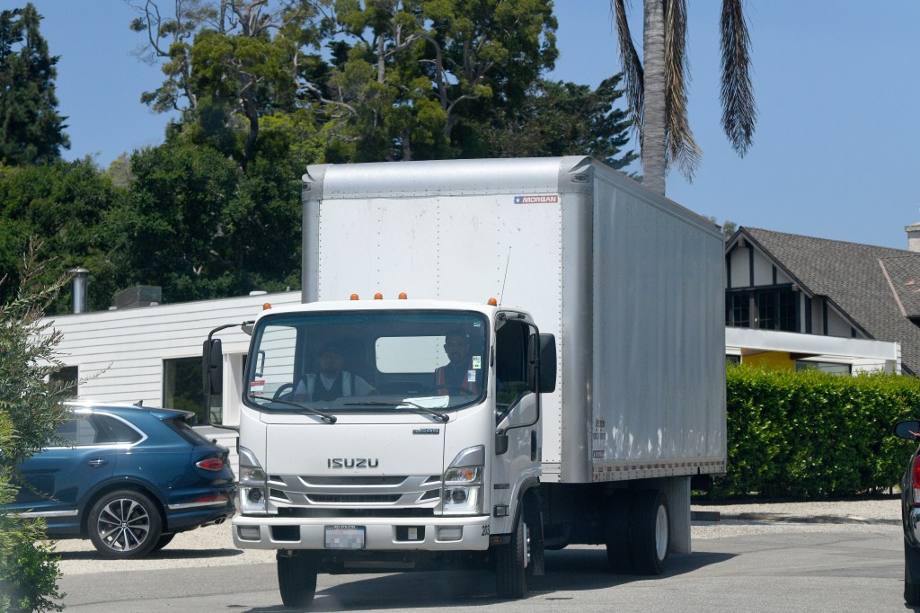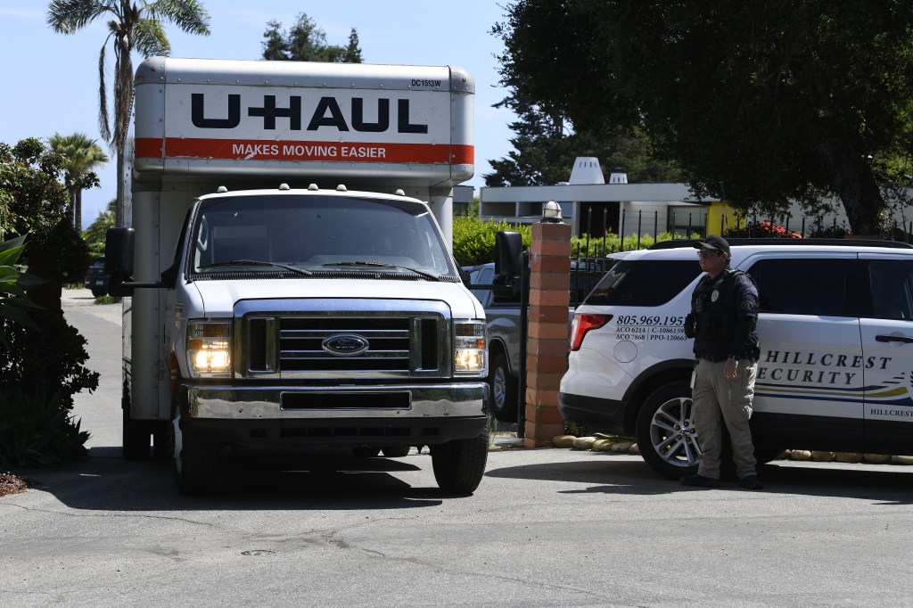 The trucks were parked outside the actor’s giant compound villa in Santa Barbara, California.