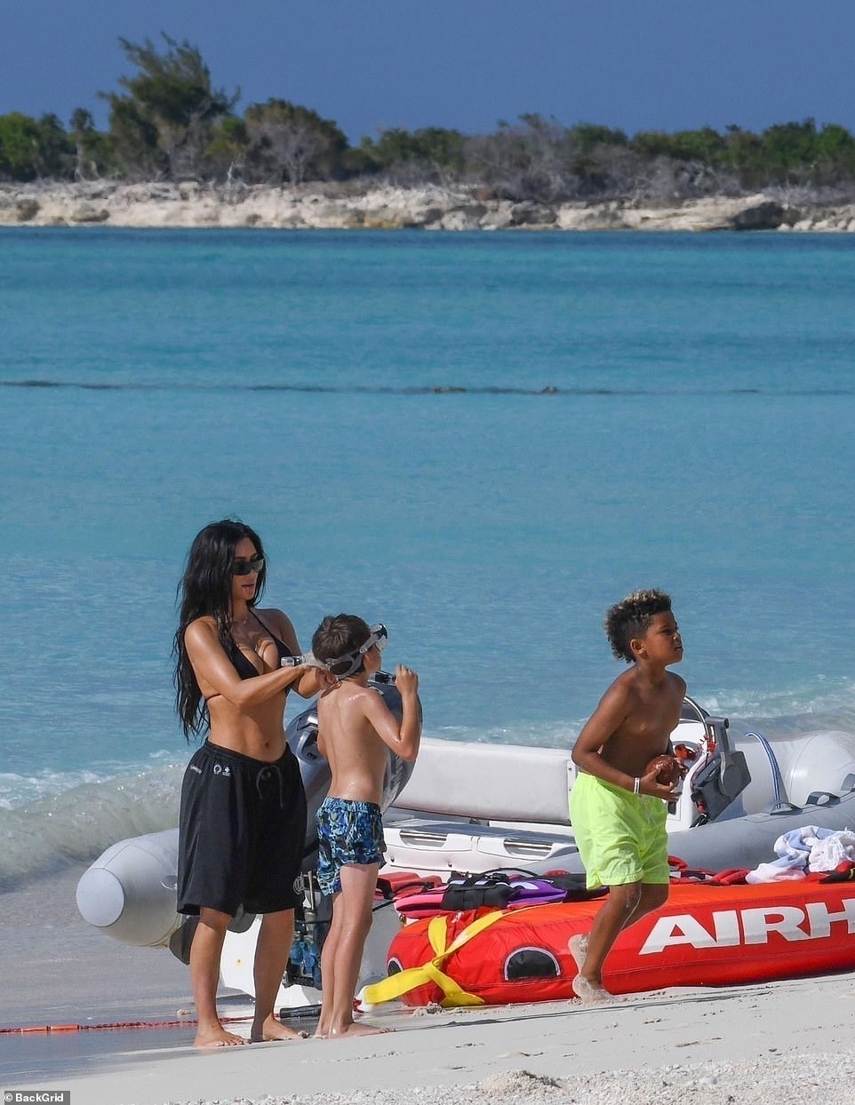 The star seemed to be enjoying some downtime with the kids at a private beach and it’s safe to say she gave the cameras a great angle of her body while making sure her kids had a blast while soaking up some sun.