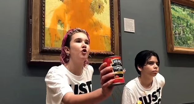 The bizarre incident took place at the National Gallery in London, UK, where 20-year-old Anna Holland and 21-year-old Phoebe Plummer staged a ‘Just Stop Oil’ protest by splattering tomato soup over one of the precious Sunflower series works of Dutch artist Van Gogh.