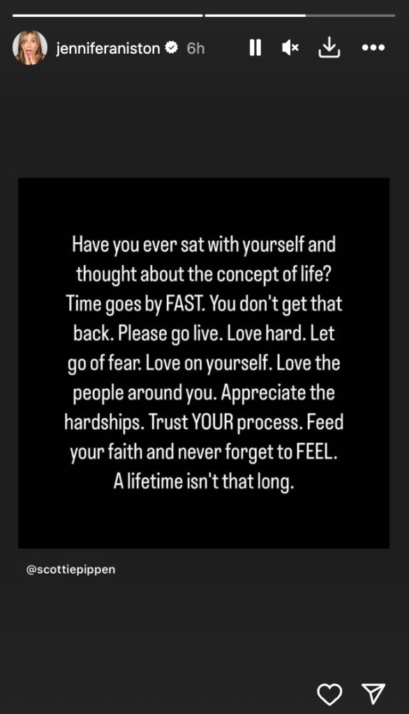 Aniston also mentioned how it’s so important to trust the process along the way. Love hard, eliminate fear, and be the best version of yourself toward the people that are around you”- she continued.