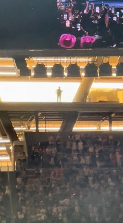 The spooky silhouette was seen watching the whole three-hour concert from a very high point at the leading Santiago Bernabeu Stadium towards the end of May.