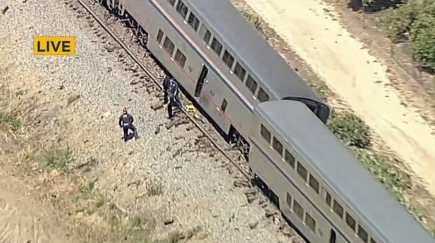 “The train derailed as a result of the impact but remained upright. Amtrak is working with customers to make alternate travel arrangements. Amtrak, in coordination with local authorities, is conducting a full investigation.”