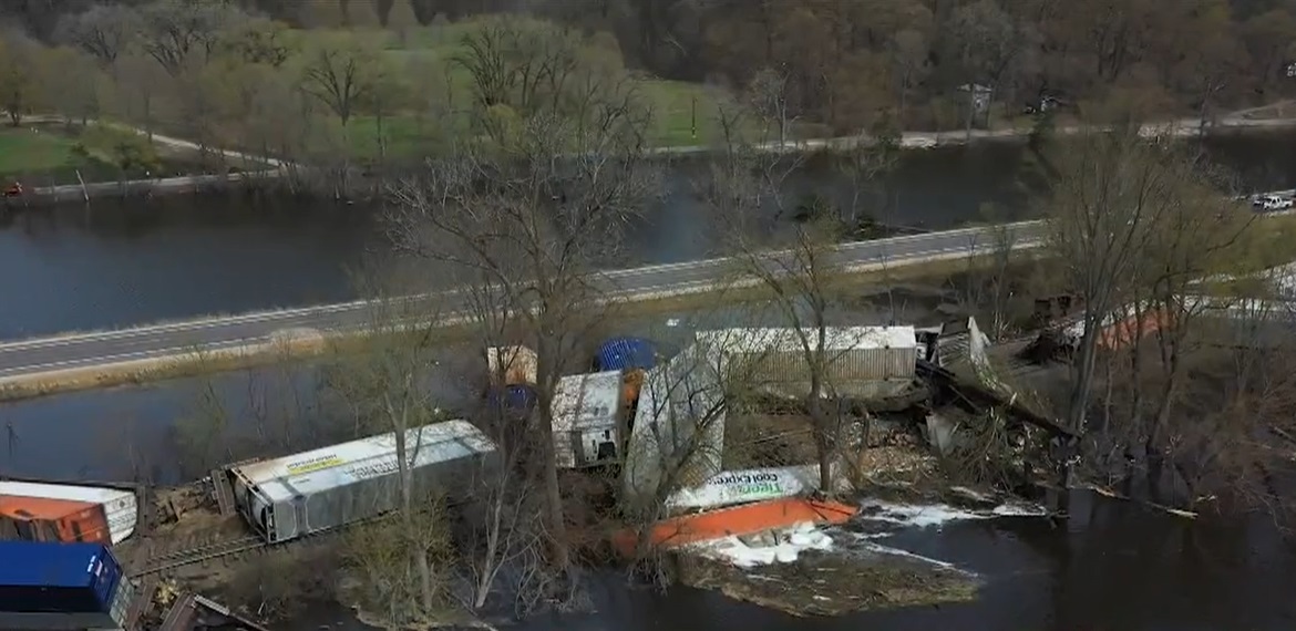 The shocking incident took place in Ferryville, Wisconsin, where a cargo train carrying paint and lithium batteries derailed and caused dozens of cars to fall into the Mississippi River.