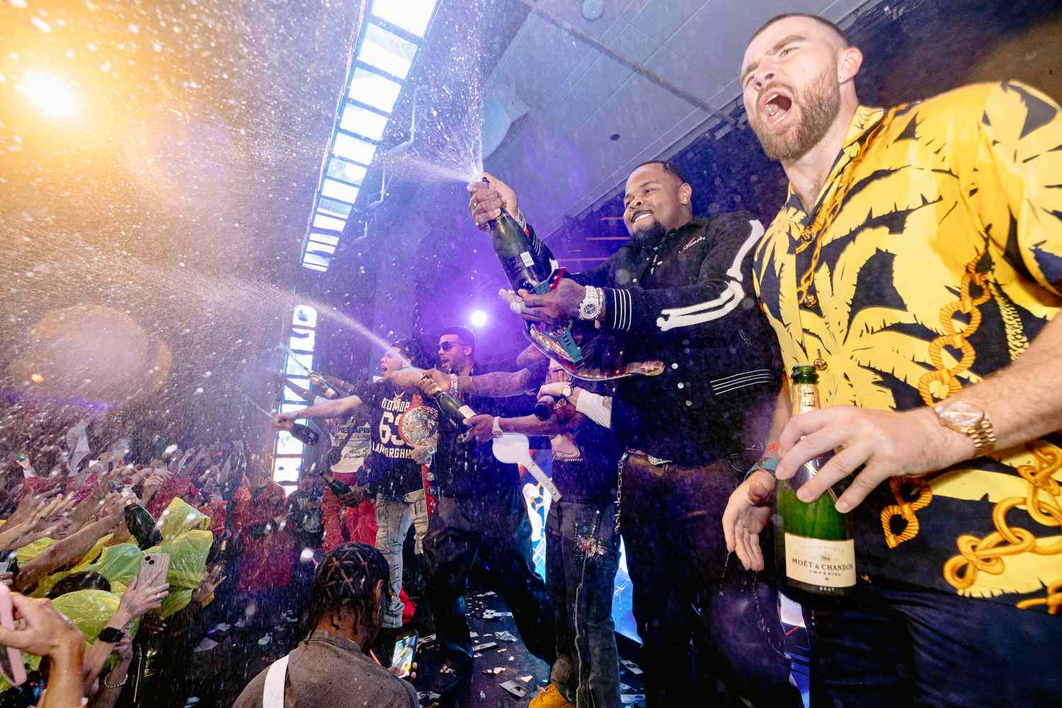 The tight end can be seen having a ball with his fellow teammate Patrick Mahomes. They both continue to celebrate the massive Super Bowl win as Swifties is super concerned that perhaps putting stricter rules in place on him by Swift is resulting in the opposite when he’s apart from her.