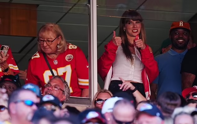 At one point in the Chiefs’ match against the Chicago Bears, Swift was seen bonding with other fans including Kelce’s mother Donna who remained by Taylor’s side throughout the showdown.