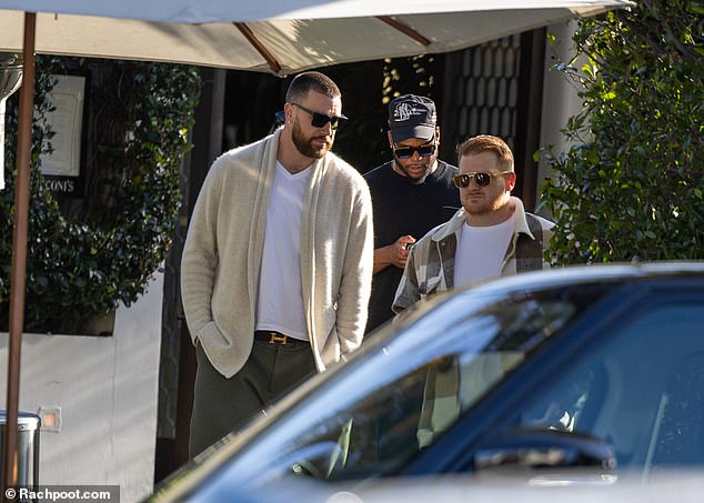 Kelce looked well dressed and groomed in his cozy cream-toned wardrobe that featured a sweater, white shirt, and also a belt from leading fashion label Hermes. This was paired with some black shades too.