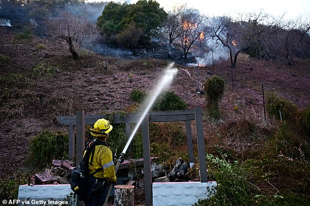 He did not miss out on the chance to blast ‘incompetent dems’ for not doing enough to put out the blaze on time as new winds continue to wreak havoc.