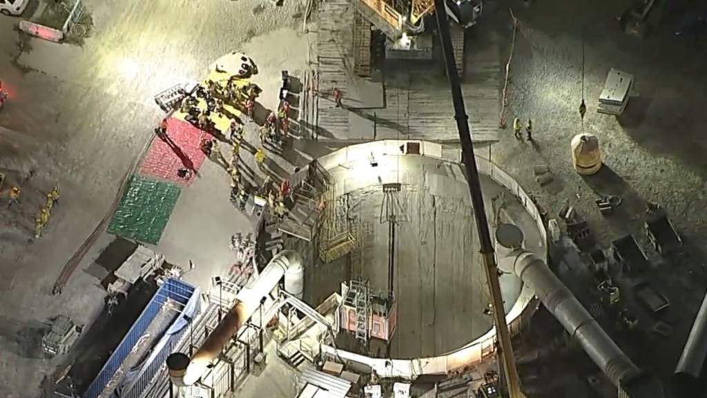 A massive 12 to 15 foot mound of dirt was seen getting separated, and that’s when some of the workers from the main group in this 18 foot diameter underground shaft in the Wilmington neighborhood called for him as they got stuck.