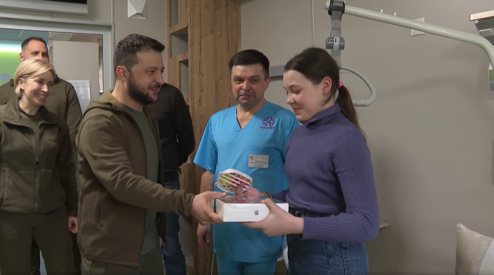 After gifting an iPad to Kira, Zelensky also thanked the hospital staff for working tirelessly to save Ukrainian lives.
