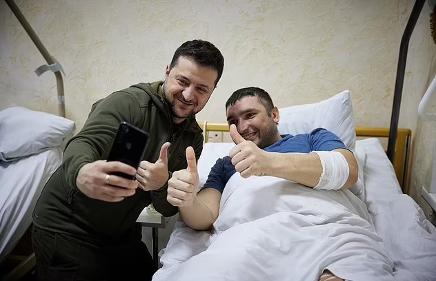 The Ukrainian president has once again won the hearts of his countrymen as he paid a visit to the wounded soldiers at the Kyiv military hospital.