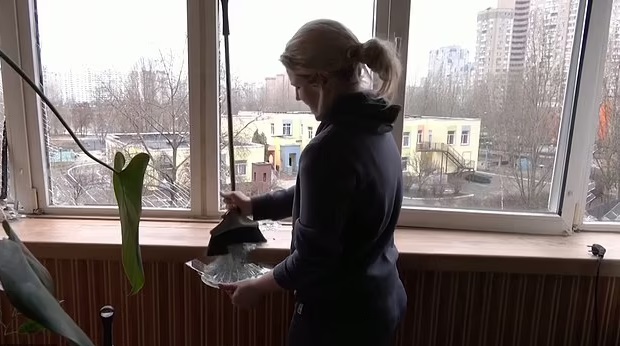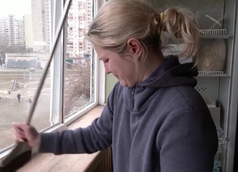 In a tear-jerking video taken by Oksana, Katya was seen removing glass shards from the apartment while singing Ukraine’s national anthem and fighting back tears.