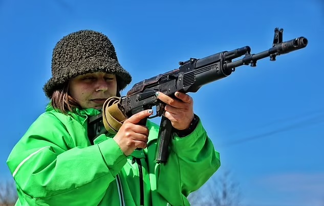 In inspiring pictures, ladies with no knowledge of warfare are seen training with assault rifles to protect their homeland.