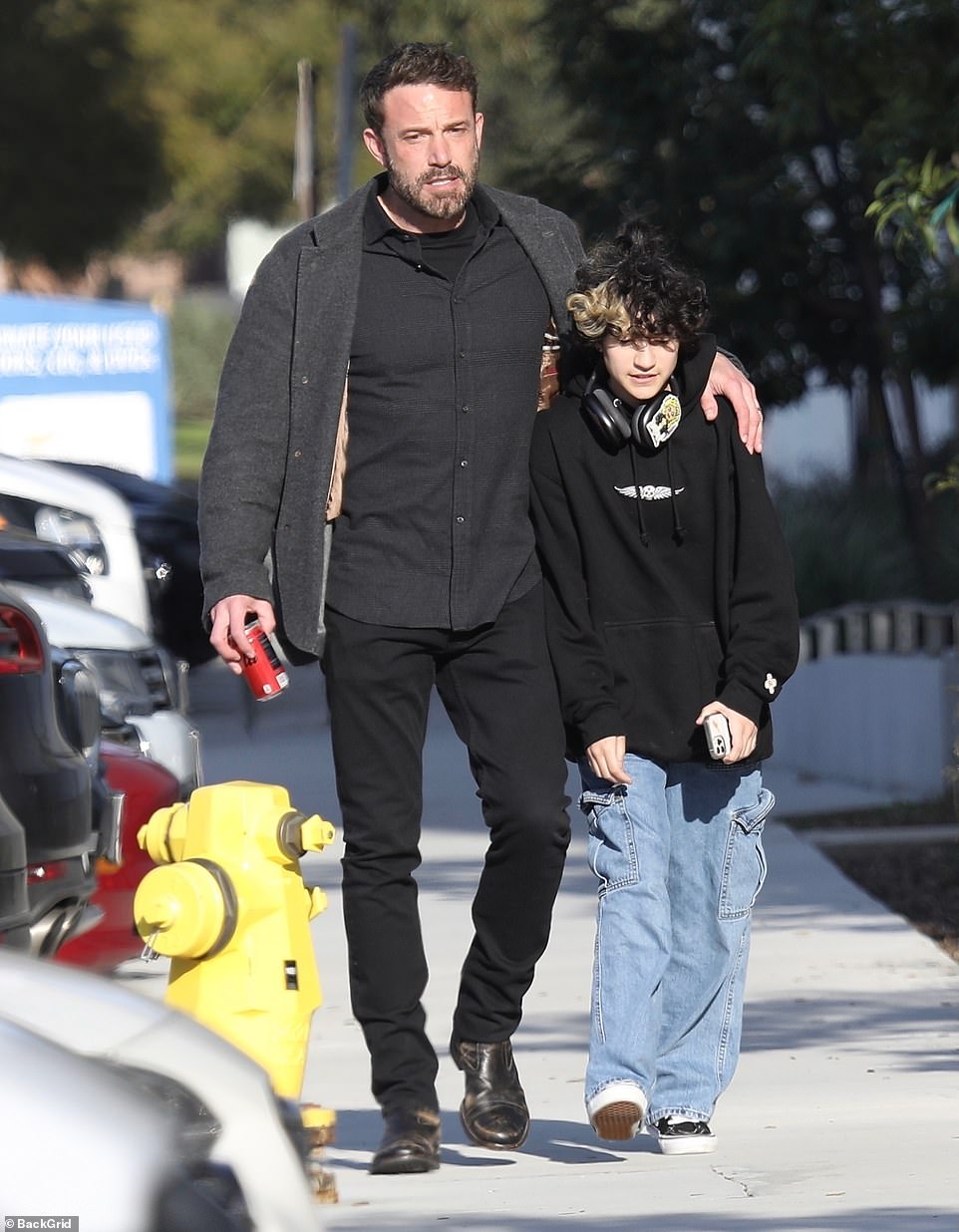 Ben was seen being affectionate with Jennifer Lopez’s 14-year-old son Emme. The actor opted to don a wonderfully casual look but he still looked every bit the dapper star that he is.