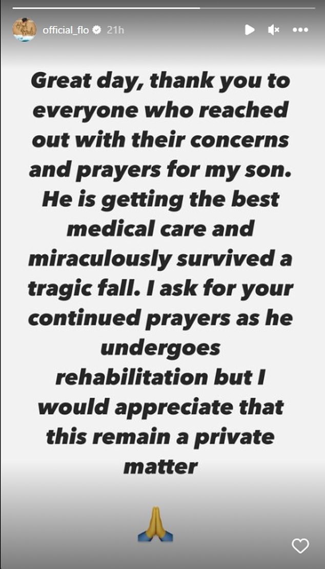 Rapper Flo Rida has reportedly provided a tragic update on his son that plunged 50 feet from his apartment window.