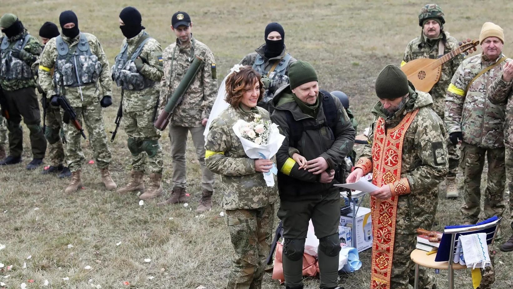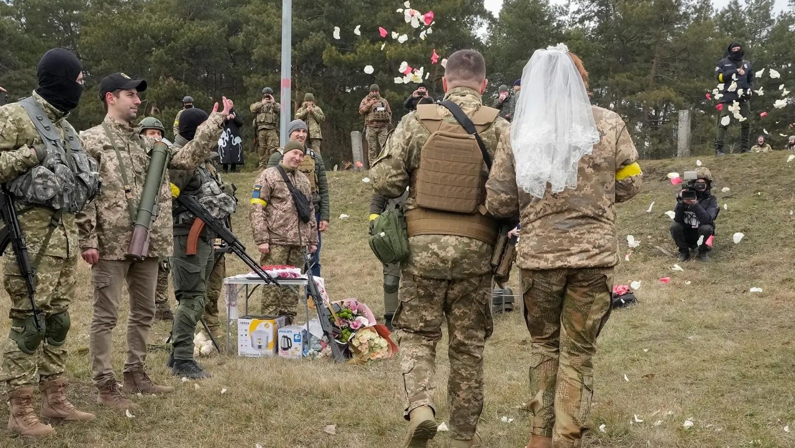 Ukrainian couple has tied the knot on the frontlines in Kyiv and said “I do” in front of their fellow soldiers.