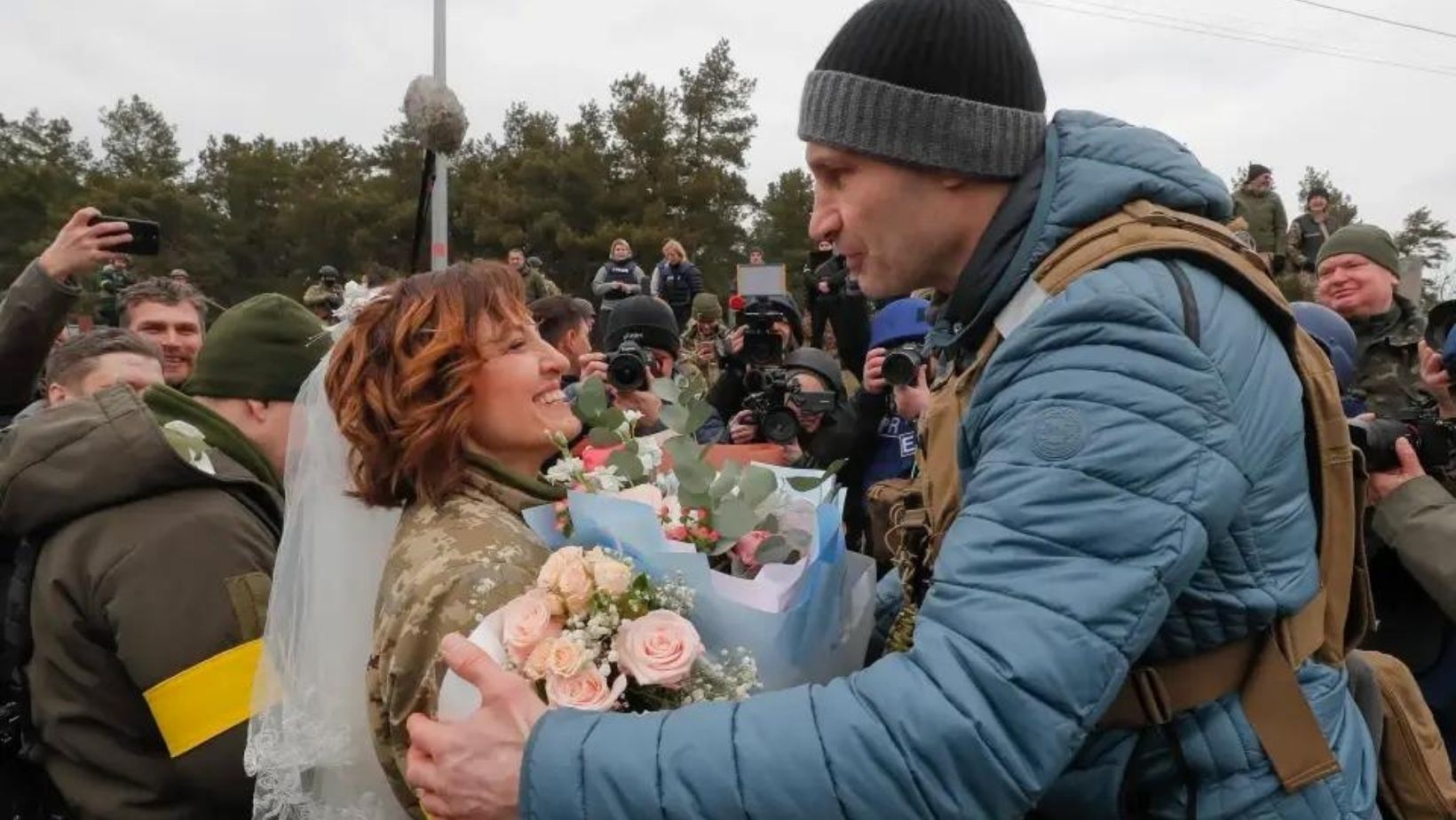 Sharing the heartwarming video on Twitter, Vitali Klitschko, Kyiv’s mayor, said: “Today I greeted the soldiers of one of the battalions of the capital’s defense of the capital Lesya and Valeri.”