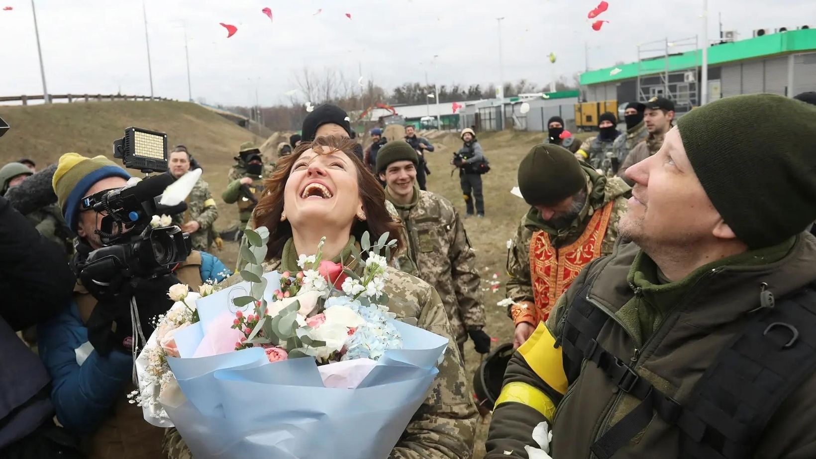 Valeriy Filimonov and Lesya Filimonov, Ukrainian soldiers, who were dressed in military fatigues, got married in Kyiv on Sunday. The wedding was flanked by soldiers armed with grenades and missiles and journalists in bulletproof vests.