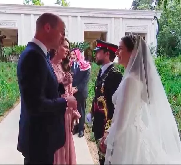And it’s safe to say that William and Kate couldn’t be more ecstatic. The duo were seen smiling from ear to ear as they sent out warm wishes and congratulations to Princess Rajwa of Jordan and Crown Prince Hussein.