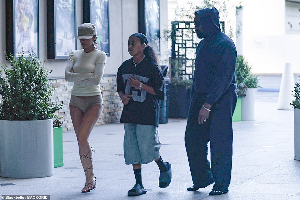Despite 11-year-old North West accompanying them, Censori opted to leave her pants at home and wear just her underwear with a skimpy top.