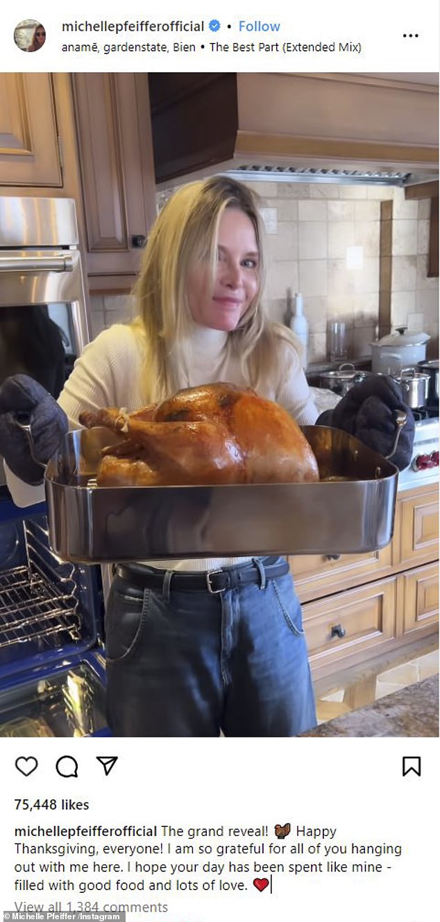 The post by the actress comes exactly three days after she shared her Thanksgiving video where she took over the kitchen to host a delicious and heartwarming turkey meal featuring the roasted meat as the star of the show with plenty of sides to accompany it.