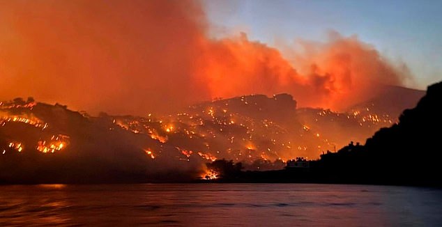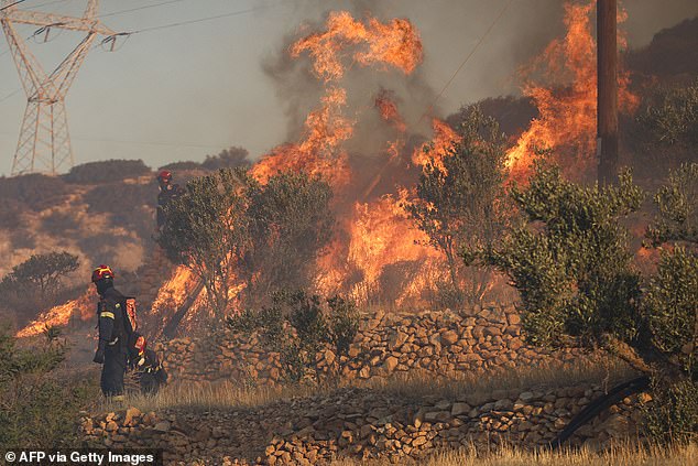 Raging wildfires forced evacuations from hotels and homes in Crete as flames were seen spreading rapidly.