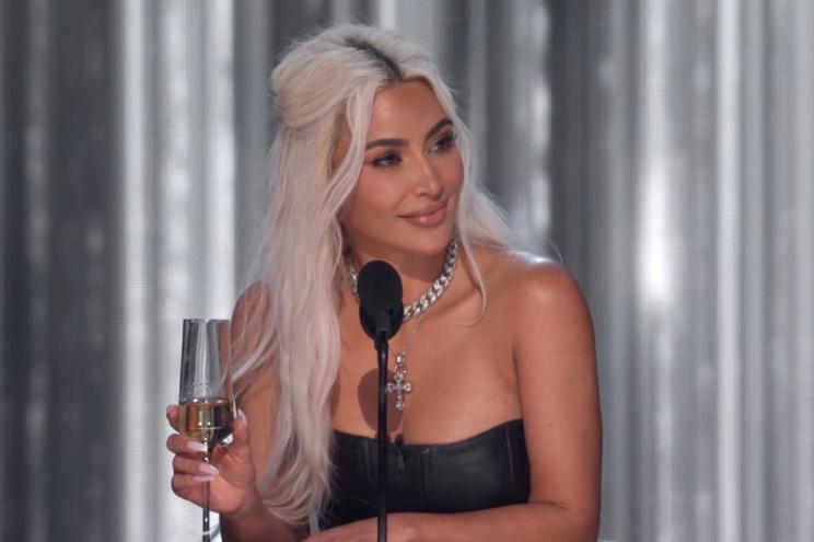 Kim was seen taking the stage to address Kevin Hart during Sunday’s ‘The Roast of Tom Brady’ where the star was the center of attention for jokes and criticism galore.