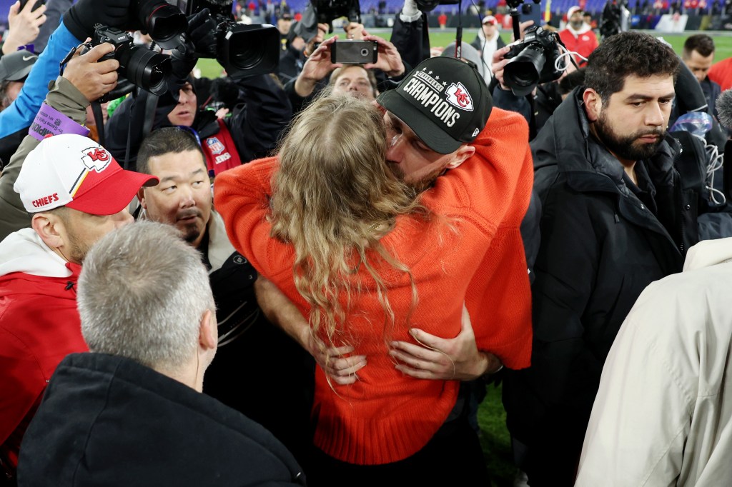 NFL star Travis Kelce and Taylor Swift were seen engaged in a startling ordeal as the singer whispered something flirty into his ear.