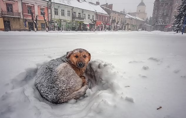 A young girl miraculously survived a freezing night in the blizzard after she was kept warm by a stray dog.