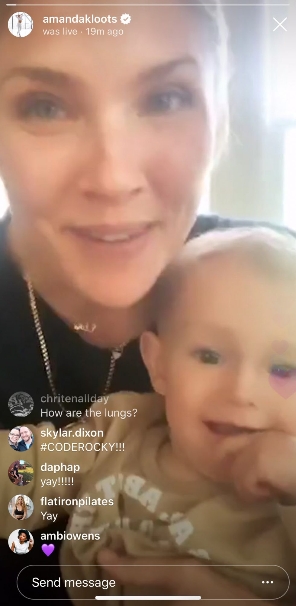 Kloots also posted a written message on her Instagram story regarding Cordero’s waking up.