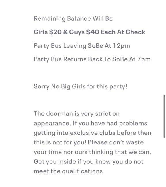 “I was left feeling so embarrassed after I was blatantly kicked off a party bus because they had a disgusting policy that stated, ‘No big girls allowed!”- she said.