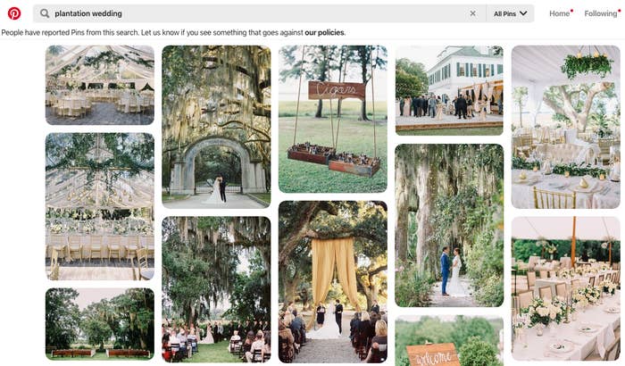 However, Pinterest’s spokesperson said that they have decided to restrict the plantation wedding content on their website and said that weddings are known to be symbolizing love, unity, and harmony but plantations do not show anything like that.