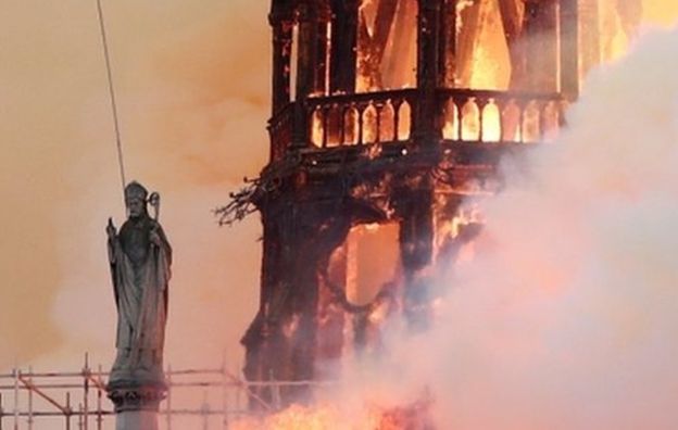 Firefighters struggled to take down many of the paintings in the church, said administrative cleric Monsignor Patrick Chauvet. Many featured the whole building would be lost due to the height of the inferno.