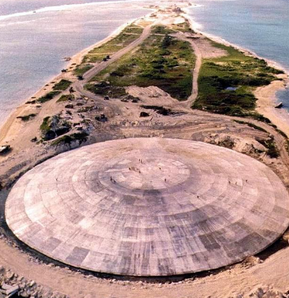 After the nuclear tests were performed, the United States built a dome in Runit island to hold all the nuclear waste which is hazardous for humans to be around.