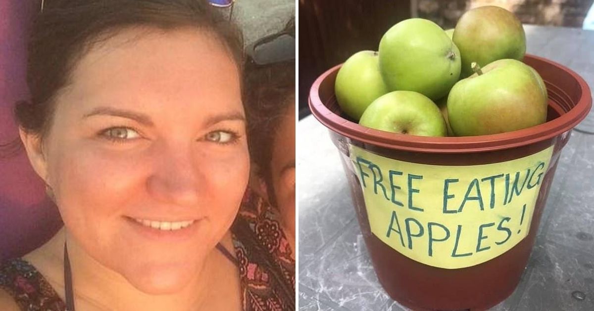 As 33-year-old Lydia Farrell, who is a nurse, explained, she thought of placing her excess apples in a bucket outside her home so that people passing by could take them for free.
