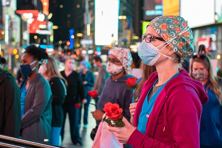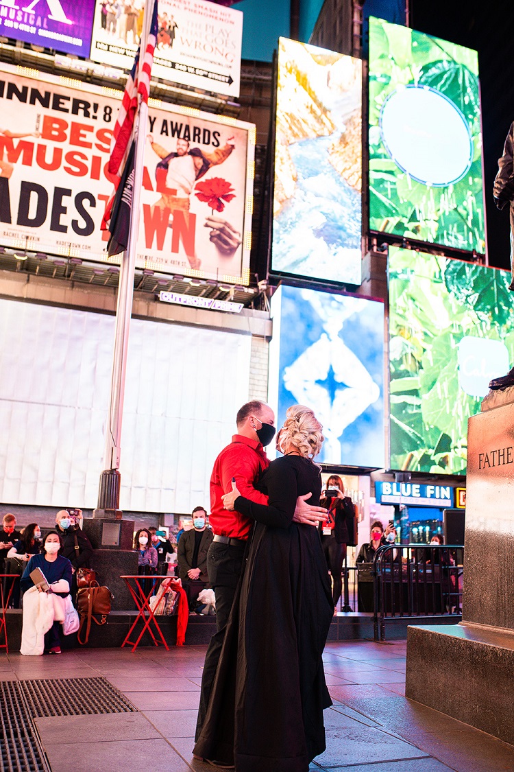On the evening of May 10, Stuart exchanged “I do’s” with Ronnie Dooley in Times Square. They had masks on, of course, but were joined by their families and her fellow travel nurses from Coney Island Hospital. The disaster staffing agency Krucial Staffing had assigned her there as a team lead.