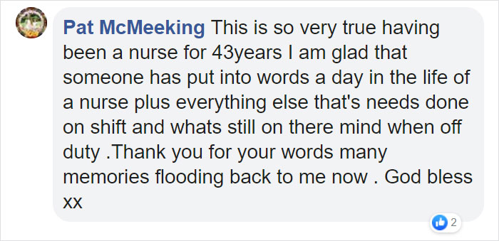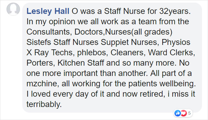People filled the comment section with their positive comments on her post and praised nurses.