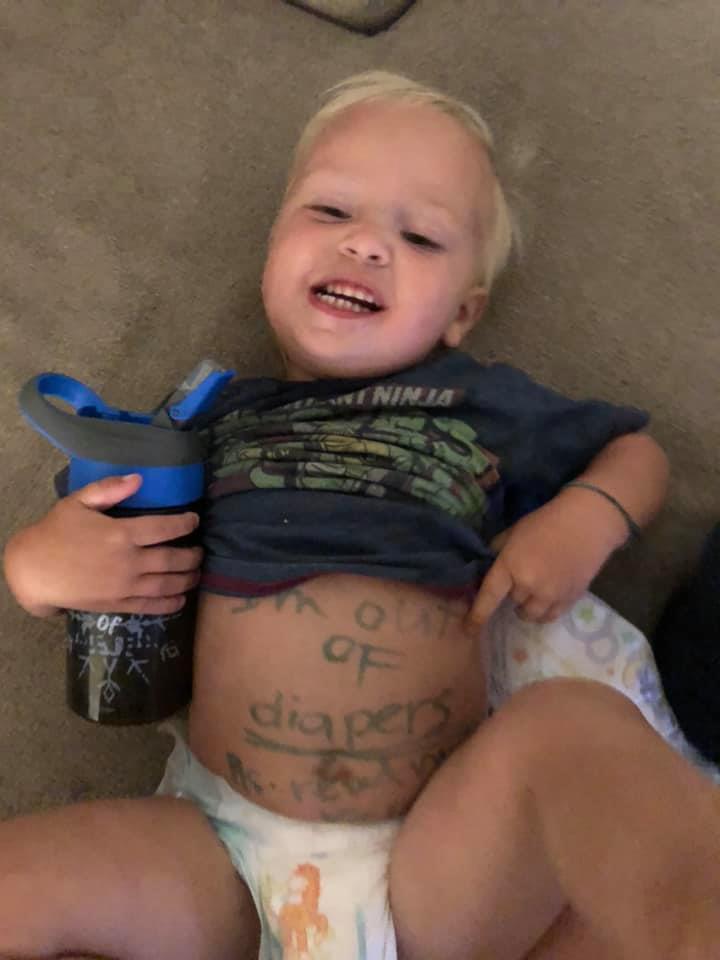 “But instead, I change his diaper this afternoon AND SEE THIS WRITTEN ON MY SON WITH MARKER.