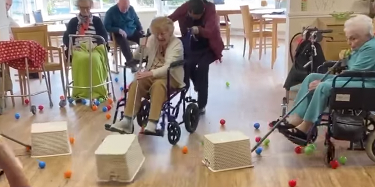But in the United Kingdom, a country now also under lockdown, the residents of one nursing home thought up a creative way to pass the time, namely, by playing a life-sized version of an old classic children’s game: “Hungry Hungry Hippos.”