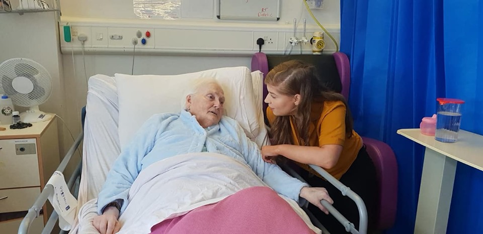 Brittany McArthur – a nursing student from Northern Ireland – joined in when her patient Nellie started singing her favorite hymn – ‘Amazing Grace’.