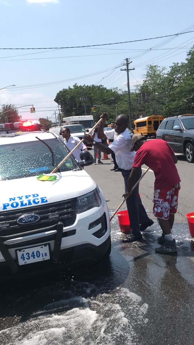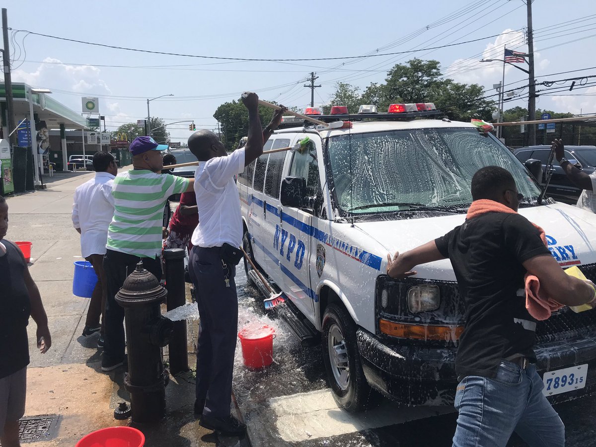 “I’m inviting all the community leaders, youth, and friends to join me this Saturday, July 27th, 2019 at 1 pm in Flatlands Ave corner east 78th St on a new challenge,” he wrote. “We don’t throw water at Police Officers, we wash their cars with it.”