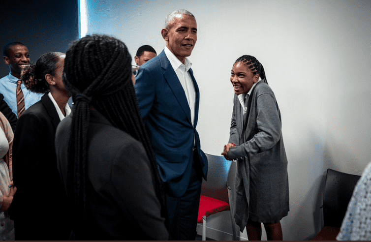 The 57-year-old 44th President thanked a student when she told him, she is interning at the site responsible for building the Obama Presidential Center in Chicago.