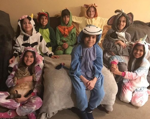 Nadya also shared photos of her brood smiling for the camera while wearing animal onesies.