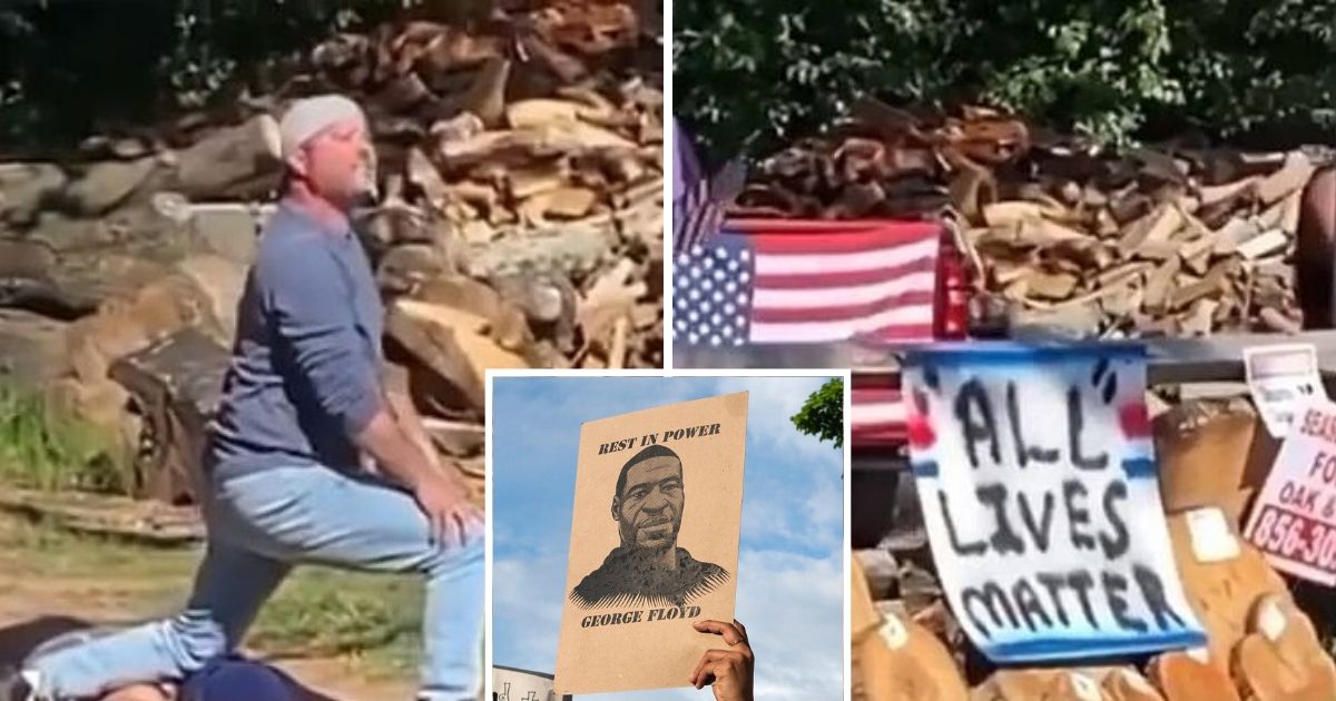 Two of the counter-protesters also appeared to be mocking George Floyd’s death, whereas one was seen kneeling on the neck of the other while looking towards the road and the protesters.